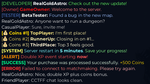 CCTFF is built for developers who want professional-looking chat with minimal scripting overhead. Configure it once and let the framework handle the rest.
